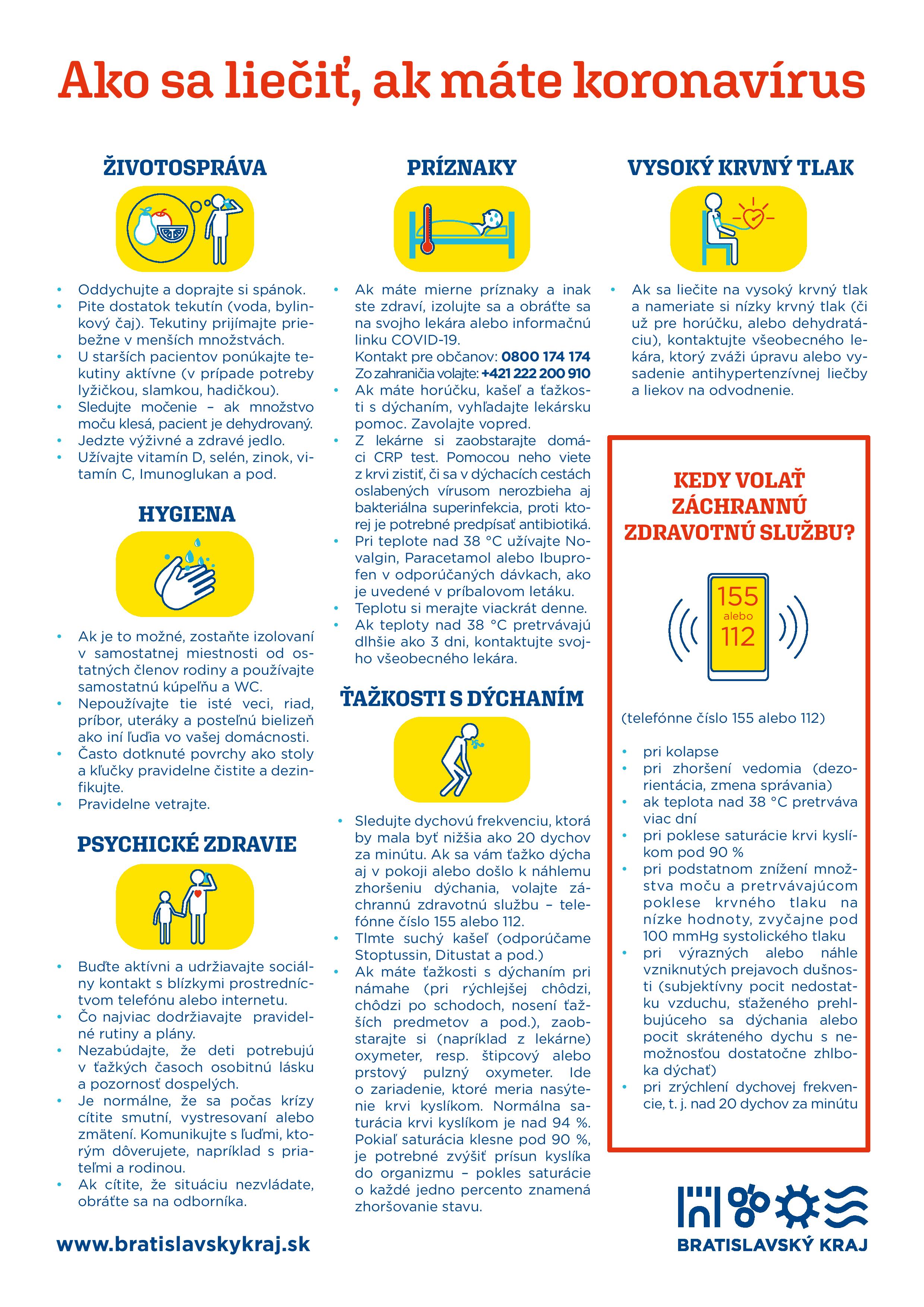 Pandémia koronavírusu zasiahla mnohých z nás a na niekoľko dní ich odrezala od rodiny, práce, nakoľko museli zostať v domácej karanténe. Niekto mal ľahký priebeh, iní sa museli popasovať s väčšími ťažkosťami. Bratislavský samosprávny kraj (BSK) pripravil základné informácie o tom, ako sa liečiť a na čo nezabudnúť, keď máte pozitívny výsledok testu na Covid-19.