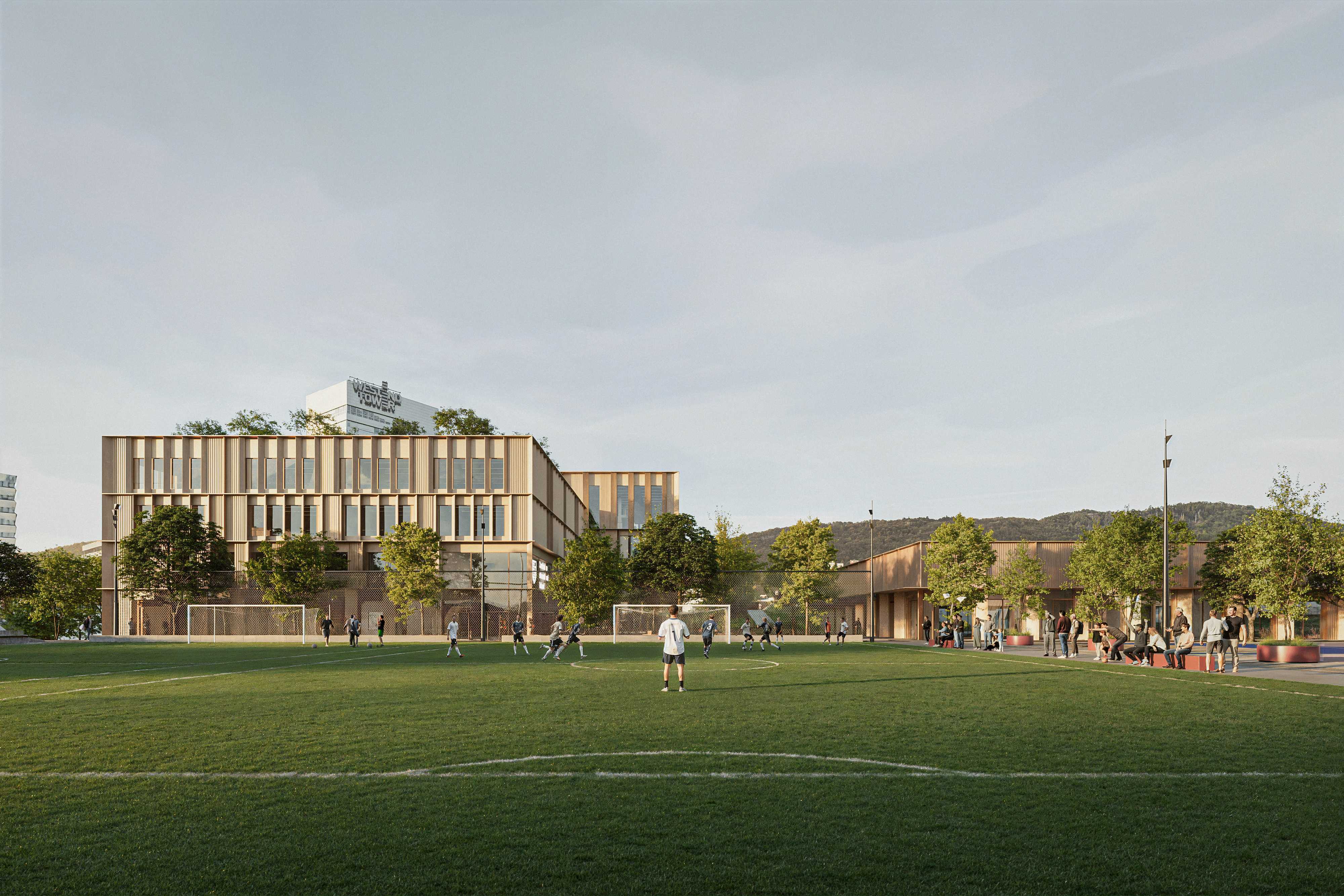 Areál ponúkne atraktívne verejné priestory ako je ovocný sad, skatepark či workoutové ihriská, ktoré umožňujú tráviť voľný čas aktívne. Projekt tiež počíta s odkrytím časti riečky Vydrice s prepojením od zastávky Patrónka až po zoologickú záhradu. Vnútorné aj vonkajšie športoviská zahŕňajú telocvične, atletickú dráhu a multifunkčné ihriská. Prepojenie vzdelávacích a rekreačných funkcií umožní študentom i verejnosti využívať tento priestor aj po skončení vyučovania. Projekt kladie dôraz na ekologické riešenia, ako je pasívne tienenie budov a využitie zelene na reguláciu mikroklímy. Architektonický návrh tiež umožňuje uzavretie časti areálu počas výučby a jeho úplné otvorenie počas verejných podujatí.