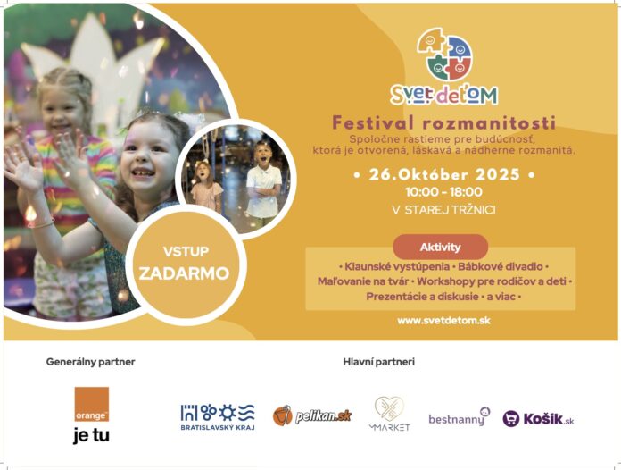 V nedeľu 26. októbra 2025 sa Stará tržnica v Bratislave zmení na svet detskej fantázie, tvorivosti a radosti. Podujatie Svet deťom ponúkne od 10:00 do 18:00 pestrý program pre deti aj rodičov – od divadiel, workshopov až po interaktívne hry a diskusie.