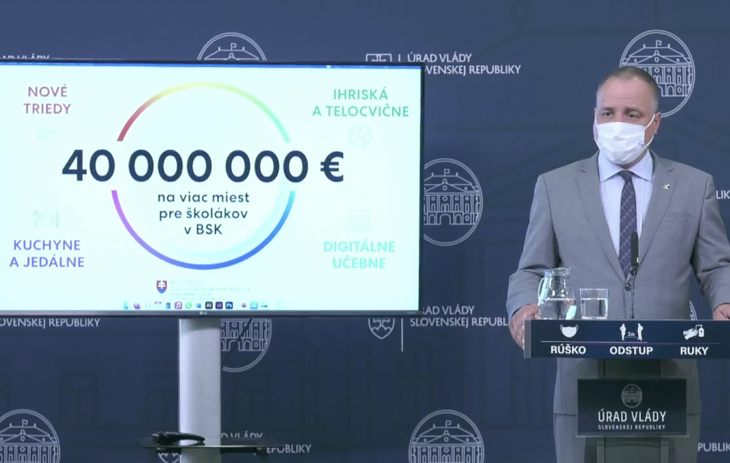 Bratislavskému samosprávnemu kraju sa v spolupráci s Ministerstvom investícií, regionálneho rozvoja a informatizácie (MIRRI SR) podarilo získať pre základné školy v kraji 40 miliónov eur. Európska komisia schválila revíziu Integrovaného regionálneho operačného programu (IROP), ktorej súčasťou je aj nový špecifický cieľ – podpora zvýšenia kapacít v základných školách na území BSK. Ministerstvo investícií, regionálneho rozvoja a informatizácie SR v nadväznosti na to vyhlásilo 29. júna výzvu na predkladanie žiadostí o nenávratný finančný príspevok (NFP).
