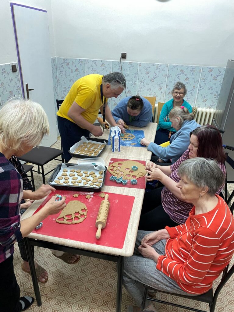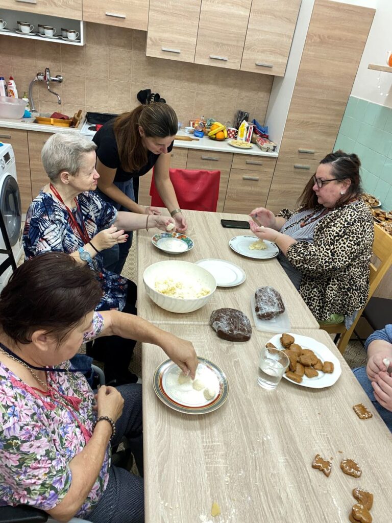 Už dopoludnia sa v zrekonštruovanej terapeutickej miestnosti rozprúdila príjemná aktivita sprevádzaná vôňou vanilky a škorice. Prijímatelia sociálnych služieb si pod vedením sociálnych pracovníkov vyhrnuli rukávy a pustili sa do pečenia chutných koláčikov. Do tohto kreatívneho procesu sa s nadšením zapojilo 11 šikovných prijímateľov. Mohli si vyskúšať všetko: od miesenia cesta, cez jeho vaľkanie a vykrajovanie rôznych vianočných tvarov, až po finálne sledovanie, kedy sú koláče upečené do zlatista.