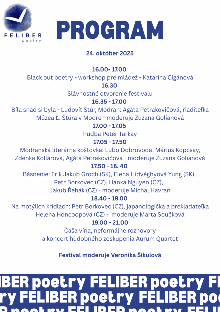 Poézia žije – len ju treba počuť, čítať a zažiť. Aj tento rok sa v Modre uskutoční medzinárodný festival poézie FELIBER poetry 2025, ktorý oživí literárne tradície Malokarpatského regiónu a prinesie doň súčasnú autorskú tvorbu.