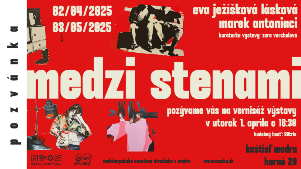 V termíne od 1. apríla do 3. mája 2025 sa návštevníci Malokarpatského osvetového strediska v Modre môžu tešiť na originálnu autorskú výstavu s názvom „Medzi stenami“. Svoje diela predstavia autori Eva Ježíšková Lásková a Marek Antoniaci, ktorí zaujať svojimi jedinečnými pohľadmi na svet a rôznymi výtvarnými prístupmi. Každý z autorov má vo výstave vyhradený vlastný priestor, kde návštevníci môžu zažiť jedinečný estetický zážitok a vstúpiť do rôznorodého umeleckého sveta.