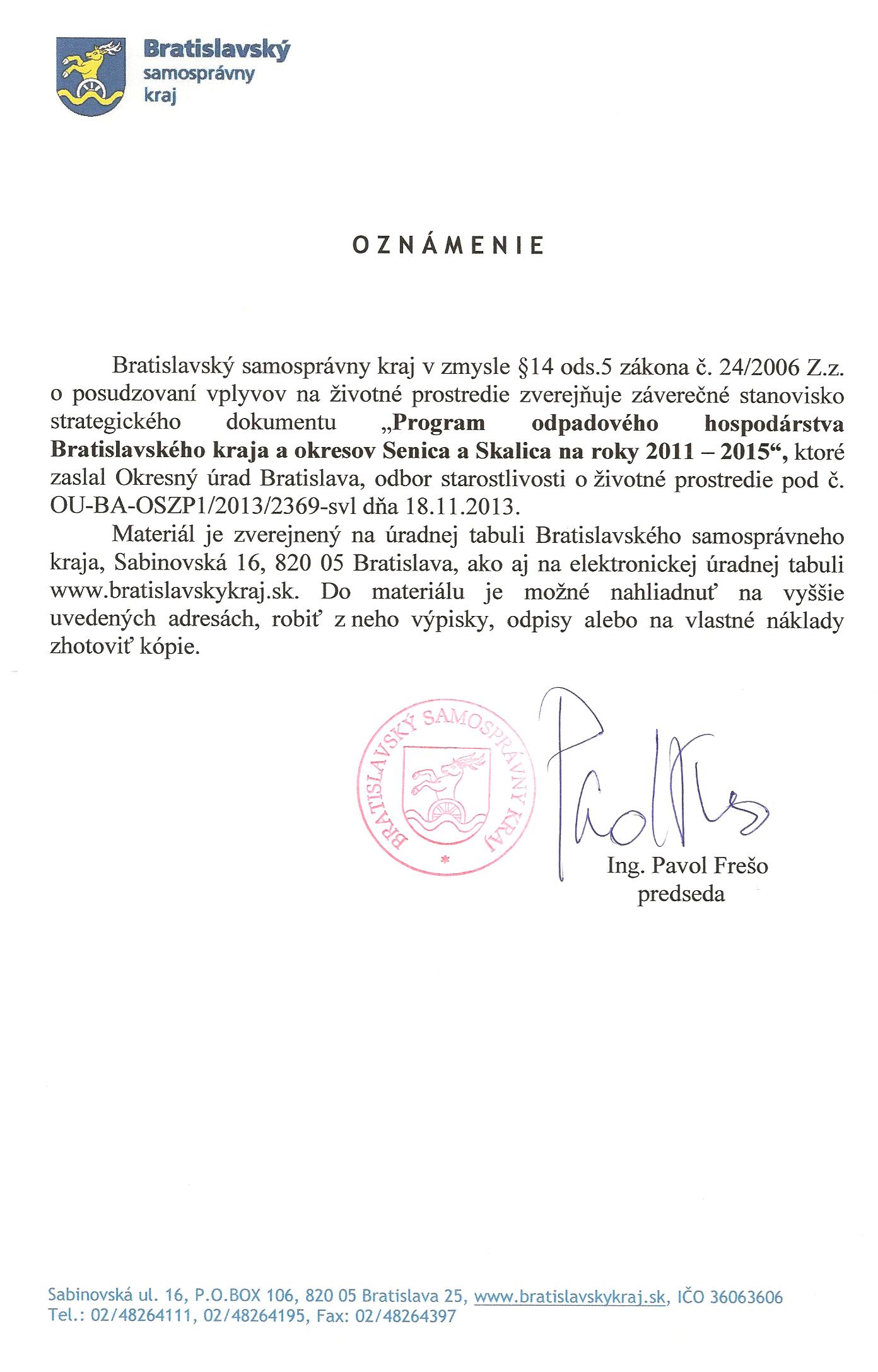 POH oznam záverečné stanovisko SEA 25. februára 2020 795 Stiahnuť Prezrieť Odoberajte novinky z Bratislavského samosprávneho kraja Zadaním e-mailu sa prihlásite na odber noviniek Súhlasím so spracovaním osobných údajov
