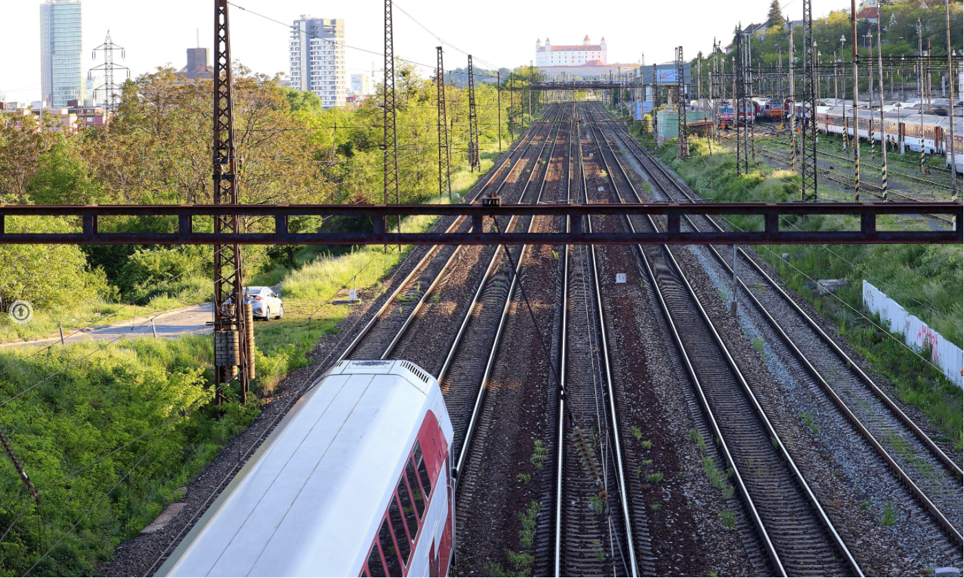 Z mosta na Tupého ulici je takýto pekný výhľad na Bratislavský hrad a železničnú trať.