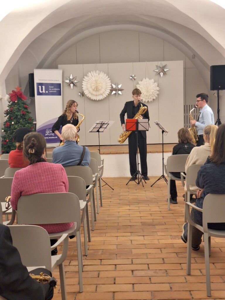 Spoločný vianočný saxofónový koncert pre verejnosť sa konal o 18.00 h. Návštevníci si mohli vychutnať majstrovstvo členov kvarteta Pressburg Saxophone Quartet, Prima Trio z VŠMU a účastníkov workshopu.
