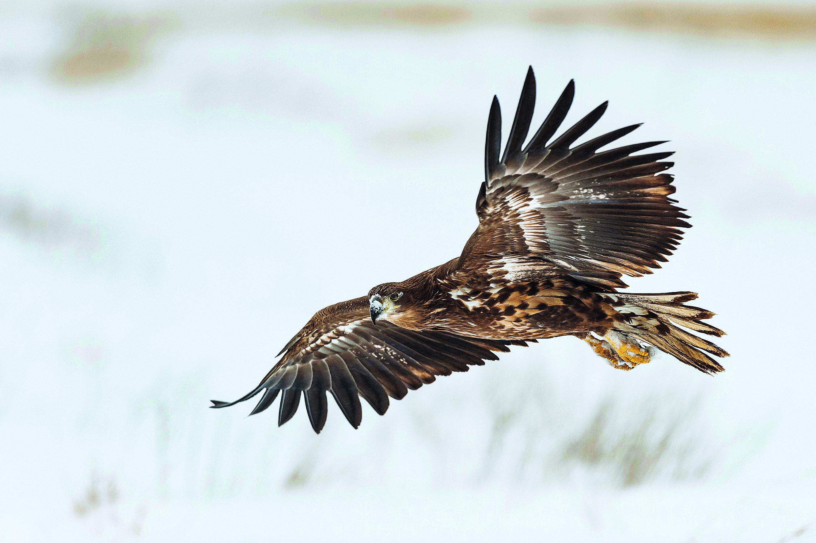 Majestátne dravce s dva a pol metrovým rozpätím krídel. Orliak morský hniezdi aj na Slovensku, najväčšiu šancu vidieť ho máte v zime, keď k nám priletia desiatky párov zo severu.