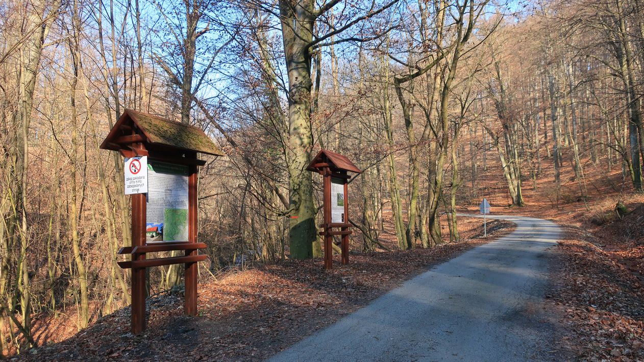 Východisko náučného chodníka, resp. jeho začiatok je v Pezinku v lokalite Hrubá dolina (dolina potoka Blatina) pod Pezinským hradom. Nenáročnou trasou ho prejdeme približne za 2,5 hodiny, prekonáme prevýšenie 270 m a vzdialenosť 4,7 kilometra. Na trase sa môžeme zastaviť pri štyroch informačných paneloch, pričom pri úvodnom paneli, ktorý informuje o Lesoch SR, chodník začína. Na prvej zastávke náučného chodníka sa dozvieme niečo o lokalite Pezinský hrad, ďalej o lokalite Rybníček, tretí panel má názov Hrubý Ostrý Rybníček a štvrtý Pod Čertovým Kopcom.