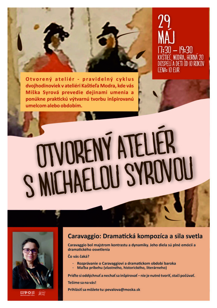 Malokarpatské osvetové stredisko v Modre otvára dvere do fascinujúceho sveta výtvarného umenia! Pozývame vás na jedinečný vzdelávací cyklus Otvorený ateliér, v ktorom spojíme dejiny umenia s vlastnou tvorivou prácou. Cyklus bude prebiehať v priestoroch Kaštieľa v Modre a ponúkne desať inšpiratívnych stretnutí, ktoré vás prevedú dielami významných umelcov a obdobím, v ktorom tvorili.