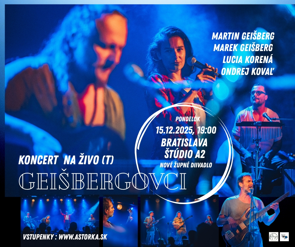 Štúdio A2 Divadla ASTORKA Korzo´90 Mickiewiczova 2, Bratislava, Slovenská republikaMartin Geišberg v spojení s Marekom Geišbergom, Luciou Korenou a Ondrejom Kovaľom - výnimočné talenty na jednom pódiu. Martin, hudobník, spevák, textár a divadelný tvorca, ktorý je autorom a interpretom vlastných piesní, ktoré rozprávajú príbehy a majiteľom hlasu, ktorý hovorí priamo k duši. So svojim otcom, hercom Mariánom Geišbergom, odohral v minulosti stovky koncertov a […]