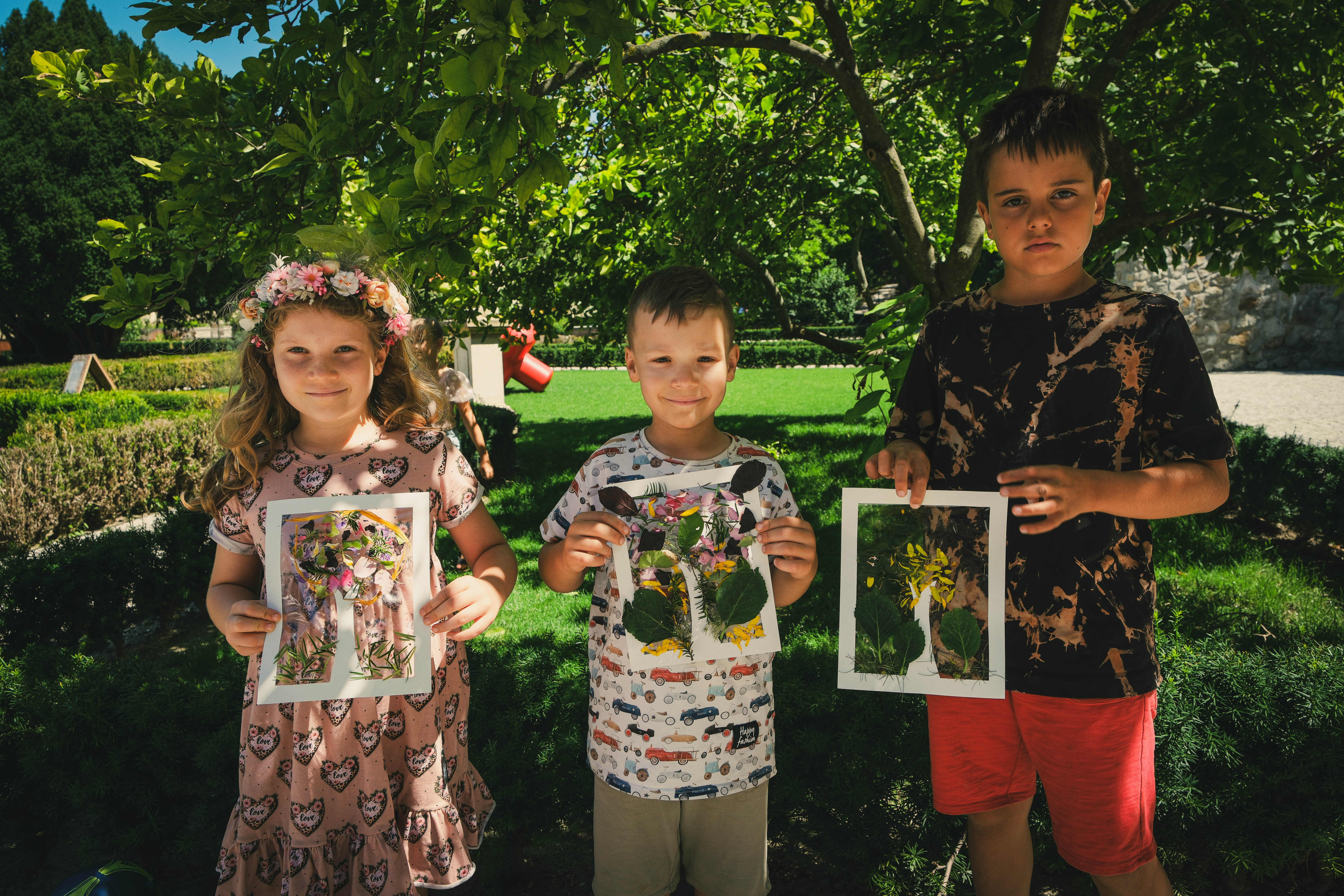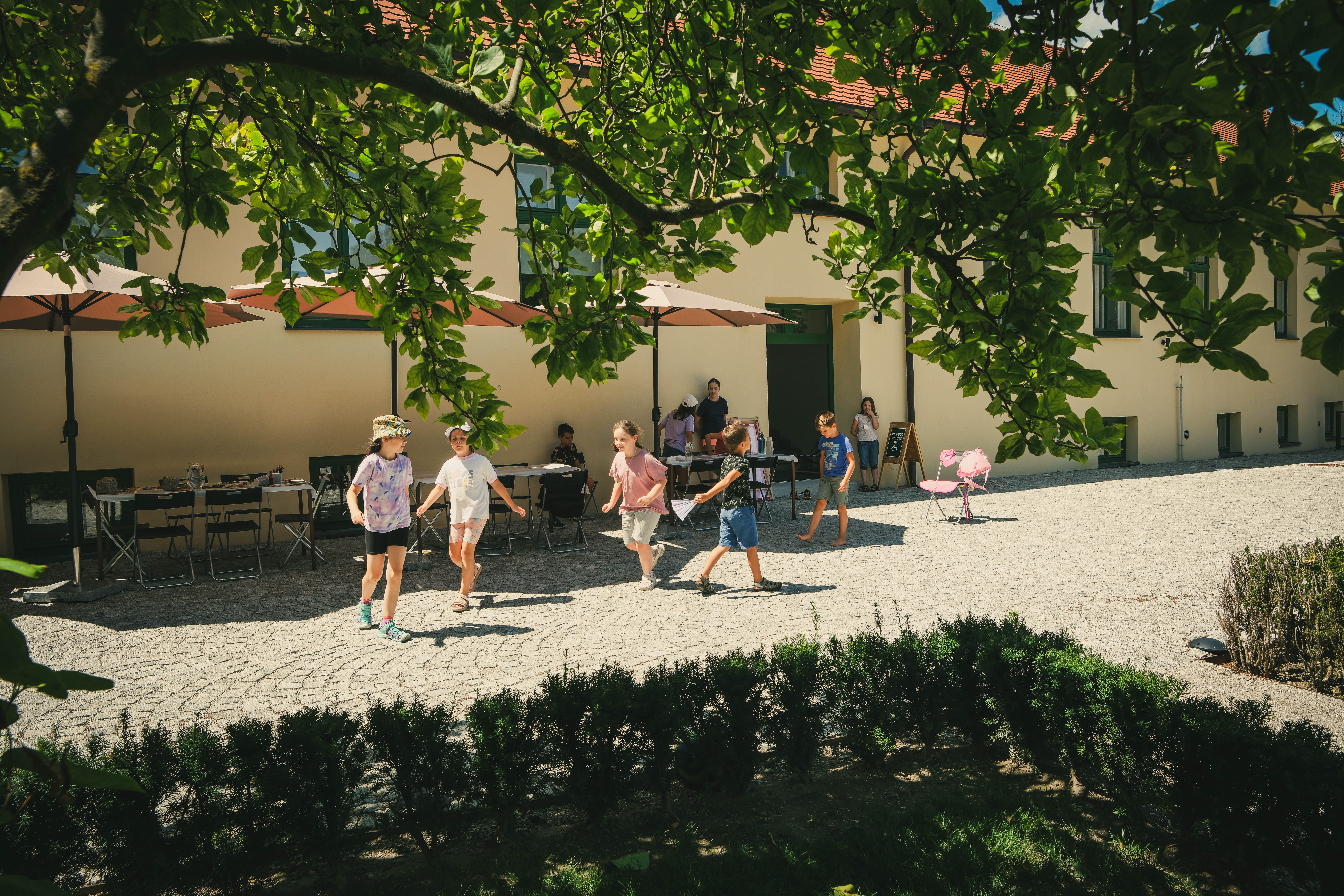 Deti hrajúce sa v záhrade kaštieľa v Modre