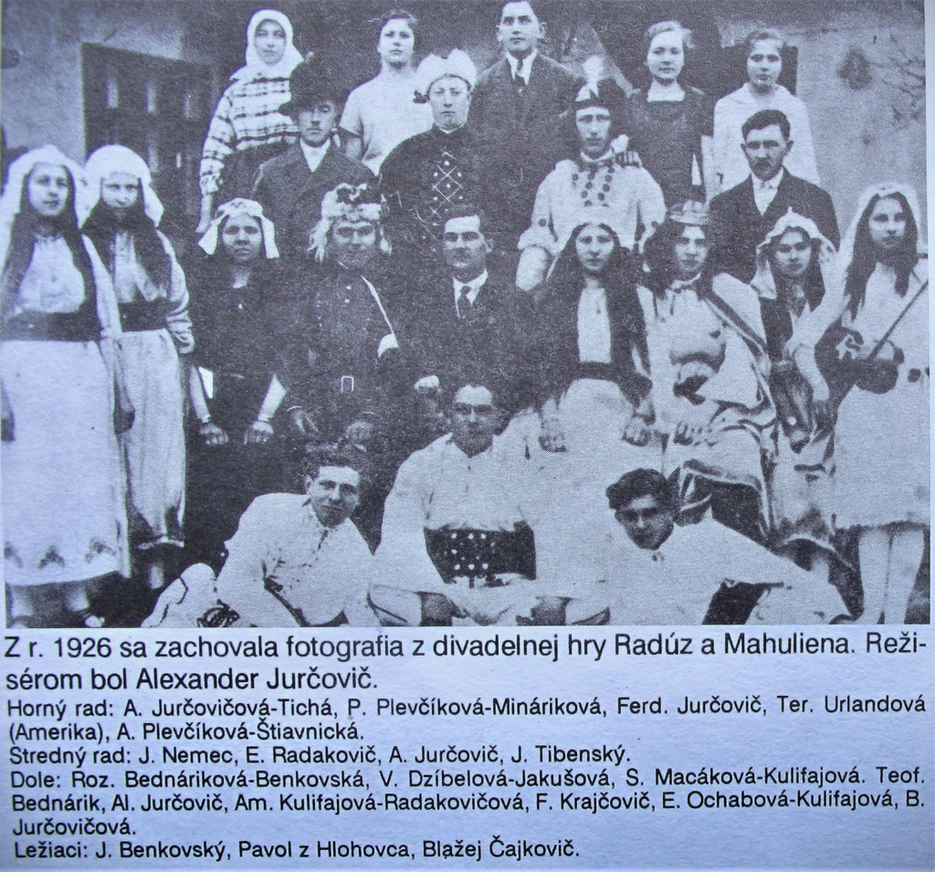 Náš súbor nadviazal na tradíciu divadla vo Vištuku. Našli sme fotografiu z roku 1926, na ktorej sú vištuckí ochotníci z inscenácie J. Zeyera Radúz a Mahuliena.