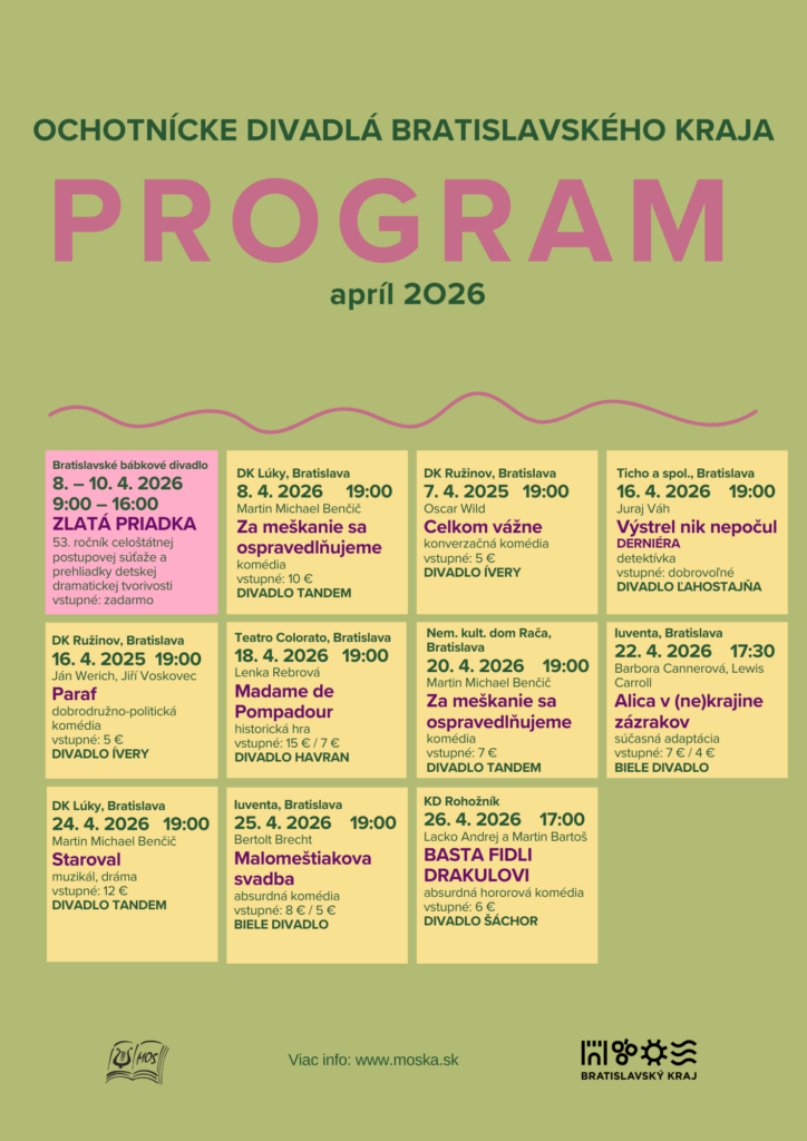 Program neprofesionálnych divadiel Bratislavského kraja na apríl 2026