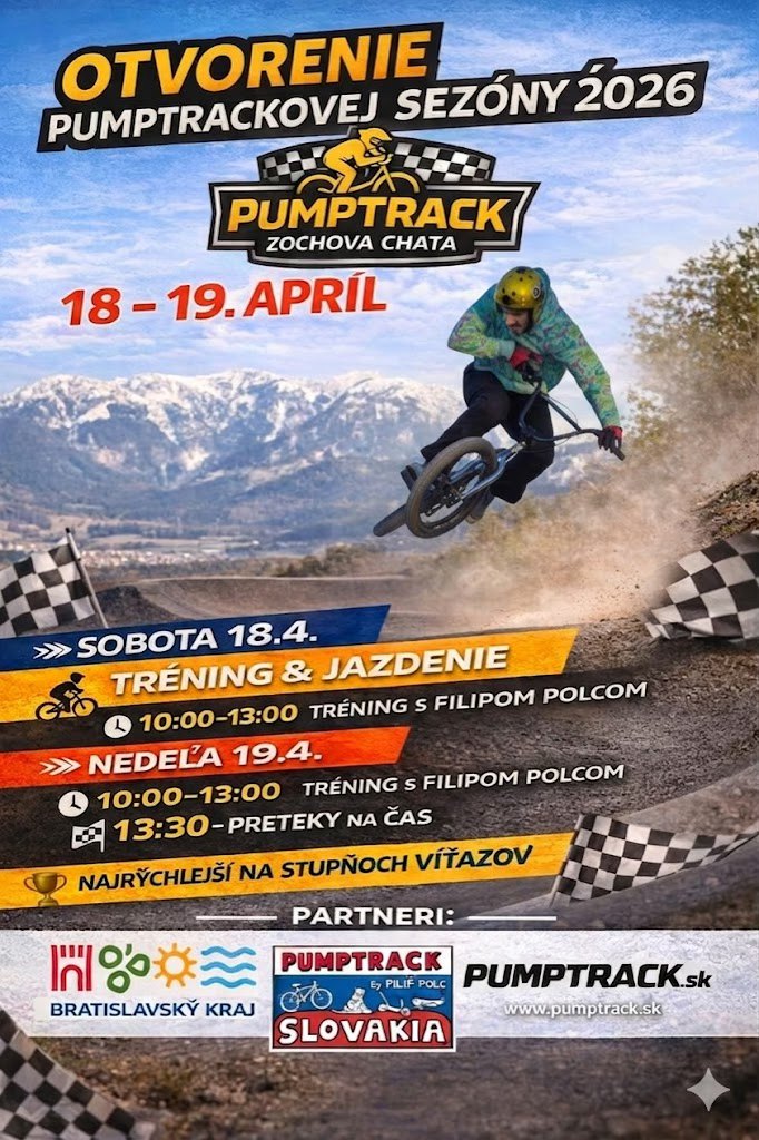 Po úspešných podujatiach z predchádzajúcich rokov sa do Bikeparku Zochova Chata vracia obľúbený pumptrackový víkend. Počas 18. a 19. apríla 2026 si budú môcť návštevníci všetkých vekových kategórií zlepšiť svoje jazdecké schopnosti pod vedením Filipa Polca a ďalších skúsených inštruktorov, a v nedeľu si zároveň aj zasúťažiť na obľúbenej dráhe.