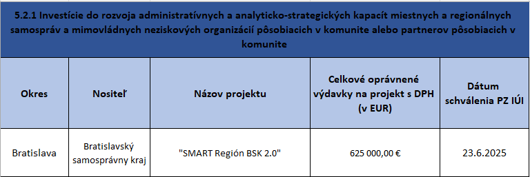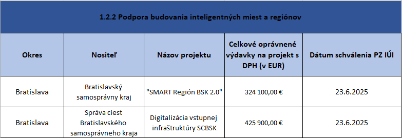 Zoznam schválených projektových zámerov IÚI