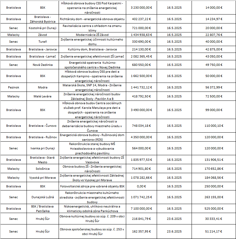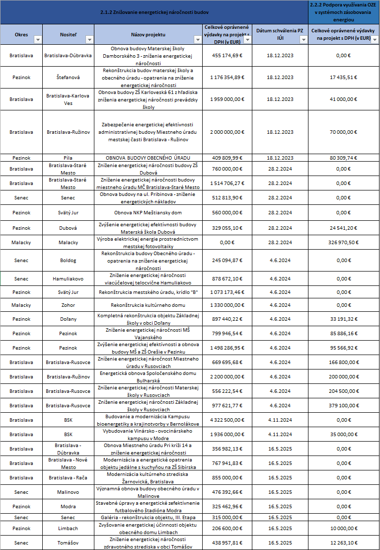 2.1.2 Znižovanie energetickej náročnosti budov a 2.2.2 Podpora využívania OZE v systémoch zásobovania energiou