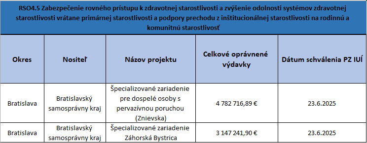 RSO4.5 Zabezpečenie rovného prístupu k zdravotnej starostlivosti a zvýšenie odolnosti systémov zdravotnej starostlivosti vrátane primárnej starostlivosti a podpory prechodu z inštitucionálnej starostlivosti na rodinnú a komunitnú starostlivosť – MZ SR