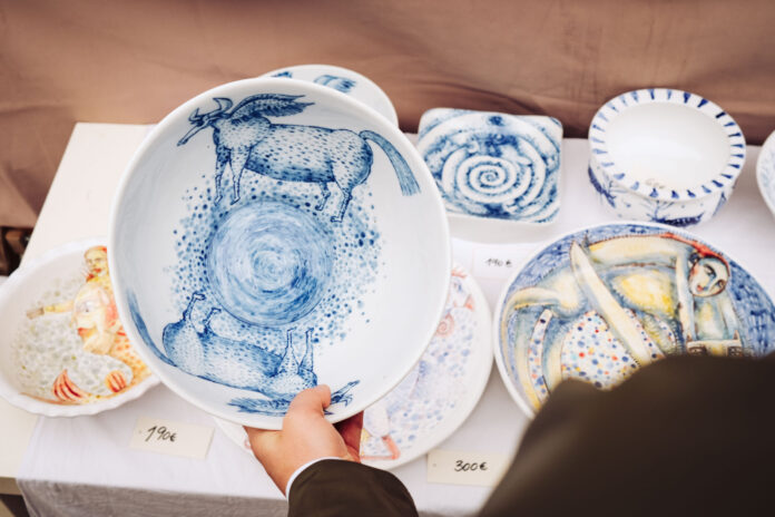 Maľovanie na keramiku v stánku Slovenskej ľudovej majoliky