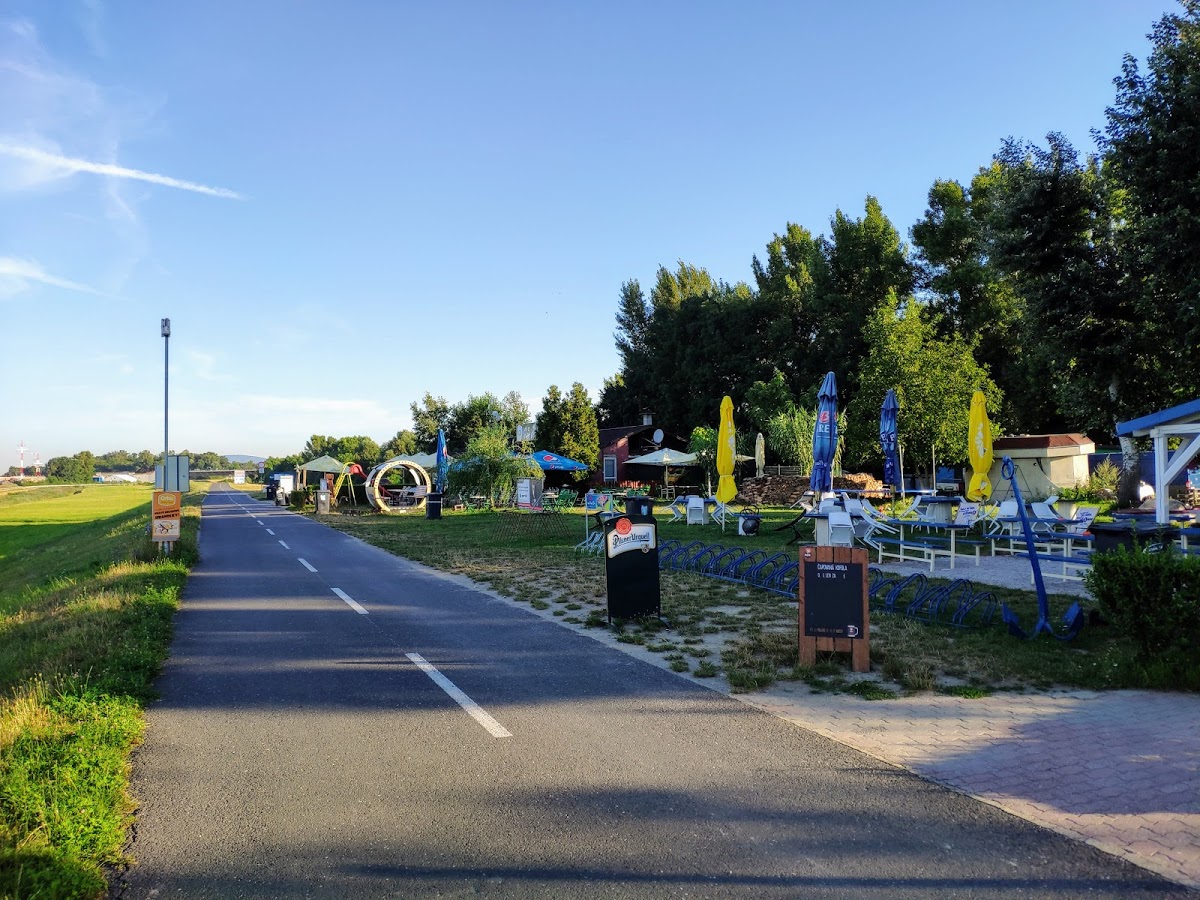- Od kaplnky pokračujeme ďalej po cyklochodníku až do obce Pama. Cez obec prechádzame po hlavnej ceste s minimálnou premávkou až na námestie. Tu odbočíme doprava a sledujeme cykloturistcké značenie, ktorá nás vyvedie z obce, prejdeme cez železnicu a na druhej strane popri nej prídeme k rozhľadni. Je z nej pekný výhľad do širokého okolia. Od rozhľadne pokračujeme po asfaltovej ceste ďalej až do pohraničnej obce Kittsee.