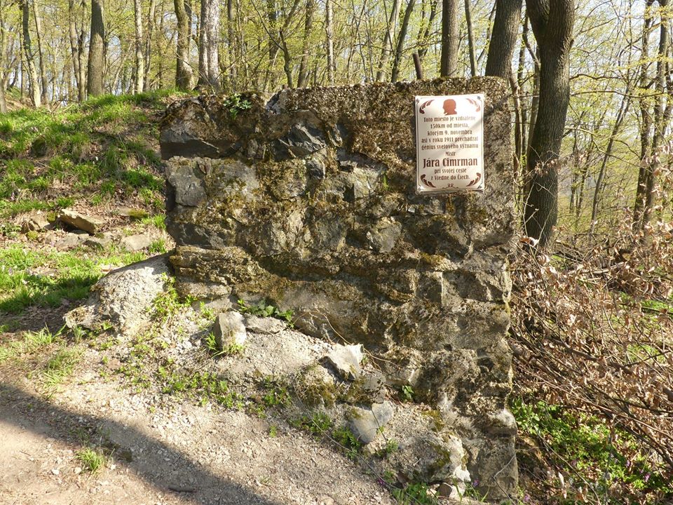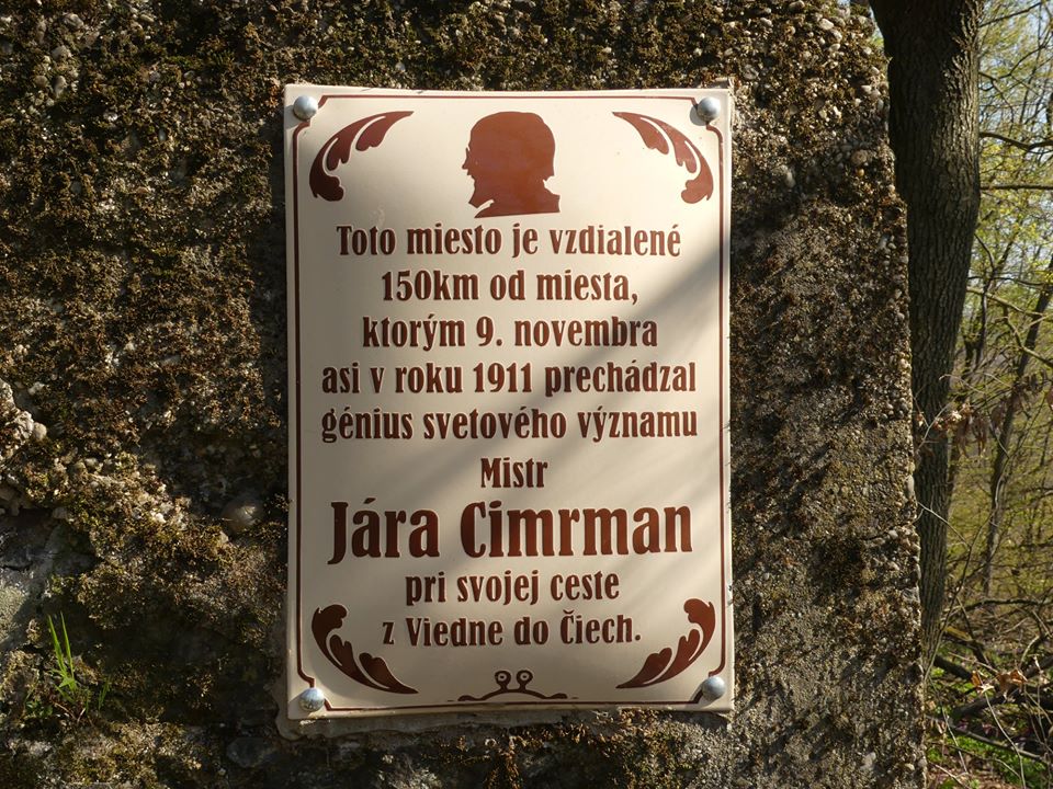 - Tesne pred Malou Baňou, po križovaní s asfaltovou cestou, môžeme nájsť spomienku na legendárneho Jaru Cimrmana. Z modrej turistickej značky ide odbočka na nenápadný, ale v poslednej dobe dosť vyhľadávaný kopec Malá Baňa – 361 m.n.m. Nájdete tu pozostatky z bývalého kameňolomu, na jeho vrchole drevený kríž, ružicu so vzdialenosťami na rôzne kuriózne miesta na svete, stoly, ohnisko, lesný bufet, lesnú knihovňu, a dokonca aj fajn húpačku. Je to vhodné miesto na opekačky a pikniky.