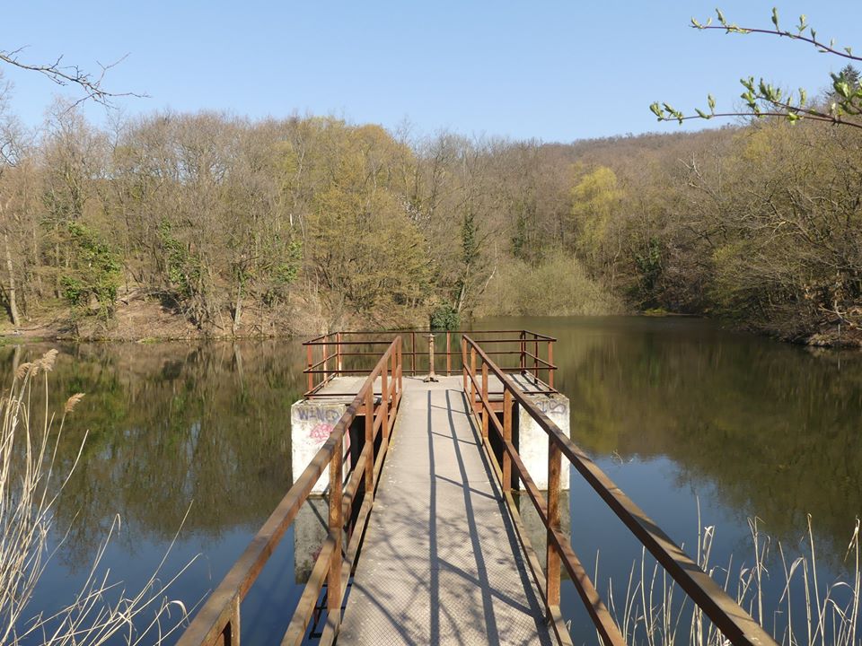 - Od tohto prístrešku pôjdeme ďalej neznačenou lesnou cestou. Vyberieme sa od prístrešku smerom do doliny, a začneme klesať, neskôr i popri potoku , ktorý budeme mať po pravej strane. Po 600 m prídeme na asfaltovú cestu, pôjdeme asi 100 m po nej vľavo, a prudším klesaním vpravo opäť budeme pokračovať po lesnom chodníku dole dolinou. Chodník nás privedie až k vodnej nádrži Vajspeter. Je to pôvodne zatopený kameňolom, teraz je tu pekná vodná nádrž aj s lavičkami. Je to ďalšie príjemné miesto na oddych, či posedenie s občerstvením.