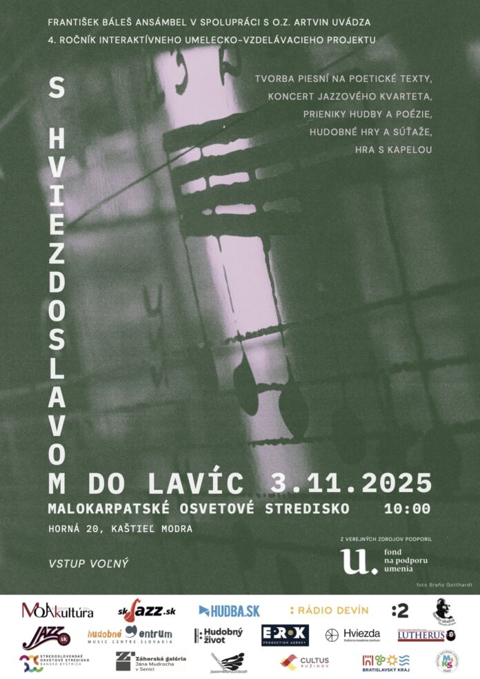 Krása poézie slovenských básnikov – Smreka, Kostru, Dilonga, Rúfusa, Janka Kráľa a Hviezdoslava, v podobe atraktívnych piesní v interpretácii kvarteta, ktoré za svoju tvorbu získalo ocenenie Radio Head Awards a cenu verejnosti Esprit Jazz Awards, zaznie 3.11. o 10:00 v priestoroch Malokarpatského osvetového strediska, v kaštieli Modra. Poslucháči, žiaci základných a stredných škôl ako aj širšia verejnosť, si okrem rytmicko melodických hier a interaktívnej prednášky na témy: „Počul si už zdžezovaného Hviezdoslava? Ako vzniká melódia na text básne?, Čo majú spoločné hudba a poézia?“ odnesú zážitok v podobe koncertu na ktorom zaznejú autorské skladby z ostatných dvoch albumov ansámblu (Sonety a Básne Múzické), ako aj z pripravovaného nového CD, ktoré vyjde na jar budúceho roka.