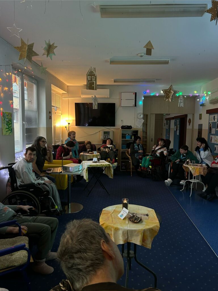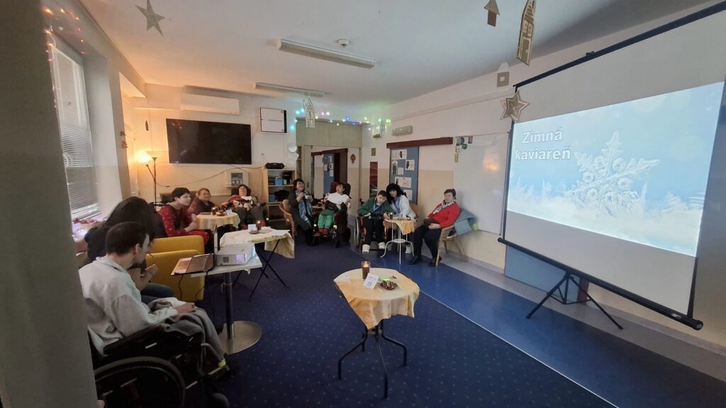Účastníci si  spoločne vychutnali príjemnú atmosféru zimnej kaviarne, v ktorej nechýbala vôňa kávy, horúcej čokolády a punču. Počas posedenia sa premietali fotografie prijímateľov sociálnych služieb, ku ktorým rodinní príslušníci porozprávali svoje zážitky a spomienky. Tieto chvíle nám pripomenuli, že aj zimné obdobie dokáže priniesť veľa radosti, pekných momentov a emócií.
