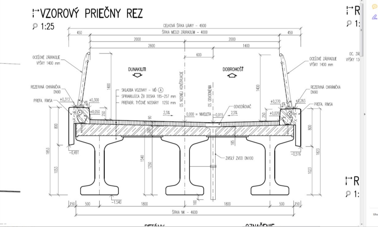 Nosná konštrukcia mostného objektu tvorí jeden statický konštrukčný a dilatačný celok s výrazným architektonickým účinkom. Vejárovo usporiadaná (semiharfová) sústava závesov, vo dvoch šikmých rovinách, optimalizuje rozloženie vnútorných síl mostného trámu vo všetkých poliach. Hlavný nosný trám je z dvoch šikmých nosníkov otvoreného prierezu so spriahnutou železobetónovou doskou. Výška nosnej konštrukcie aj so spriahajúcou doskou je 1,9 m. Spriahajúca doska je navrhnutá z filigránových dosiek a monolitickej dobetonávky. Takýto návrh je oproti oceľovej ortotropnej mostovke ekonomickejší a časovo menej náročný pri výstavbe.