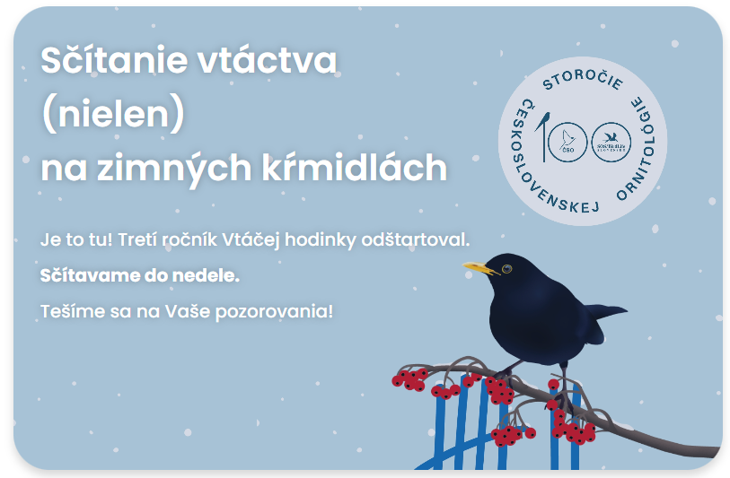 Sčítaniu vtáctva na zimných krmidlách sa Slovenská ornitologická spoločnosť/BirdLife Slovensko venuje už od roku 2015. Každoročne prijímame údaje o vtáctve na kŕmidlách od jednotlivcov aj školských kolektívov, ktoré evidujeme a vyhodnocujeme. Od roku 2024 sme sa rozhodli pripojiť k projektu Vtáčia hodinka, ktorý zjenodušuje spôsob zaznamenávania údajov pre verejnosť a povyšuje radosť z pozorovania vtáctva na úroveň občianskej vedy. Program nazvaný Vtáčia hodinka je určený všetkým záujemcom o prírodu a vtáčí život v ich okolí. Hoci ide o vedecký výskum, zúčastniť sa môže úplne každý bez predchádzajúcich skúseností, viac v sekcii Ako sa zapojiť.
