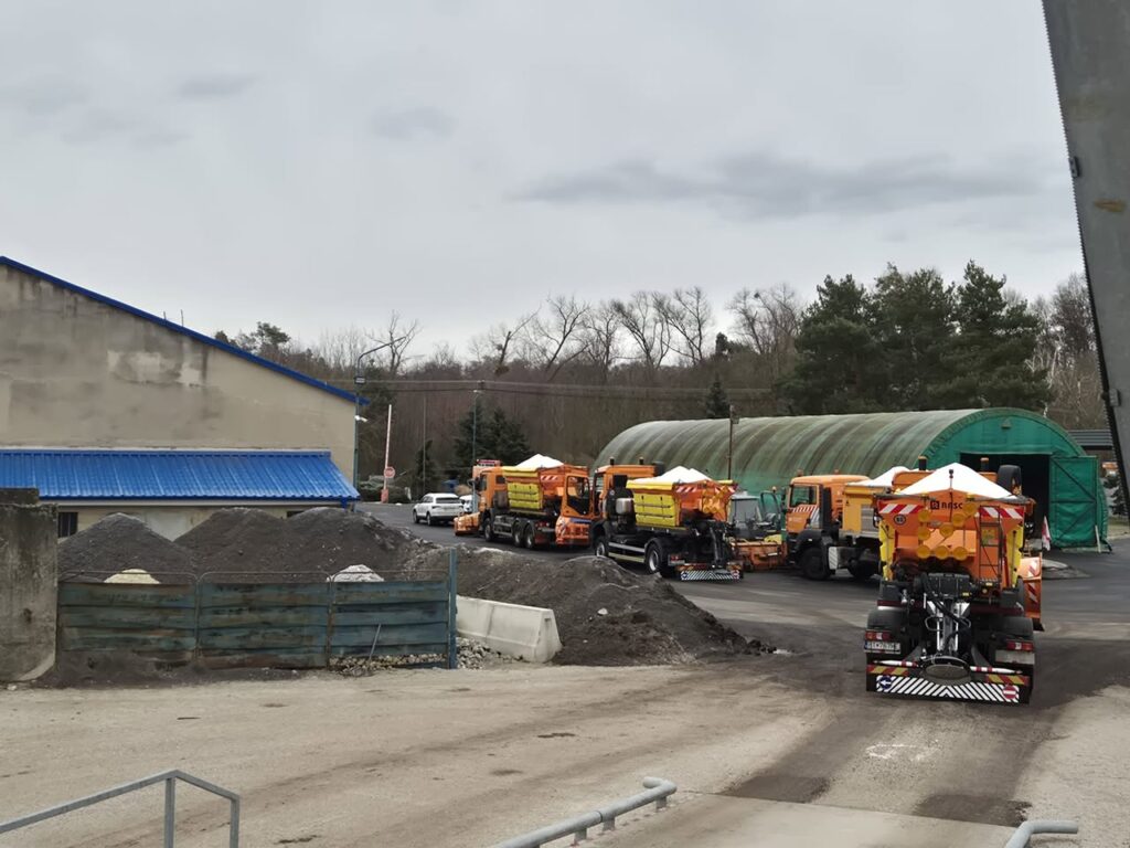 Naším cieľom je minimalizovať zbytočné prestoje. Ako vidieť na priložených fotografiách, technika je v plnej pohotovosti – naložená posypovým materiálom a pripravená zasiahnuť tam, kde to bude potrebné.